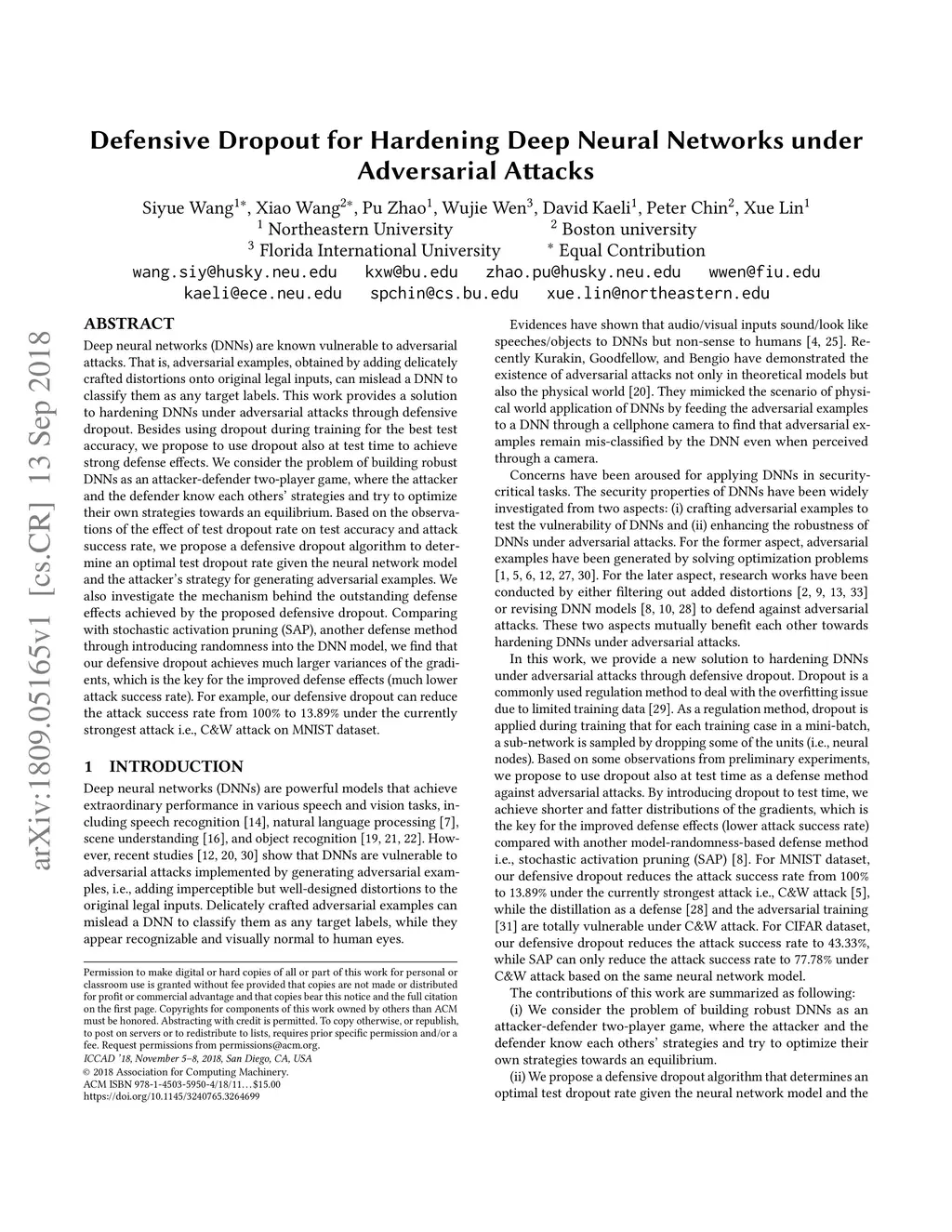 Defensive Dropout for Hardening Deep Neural Networks under Adversarial