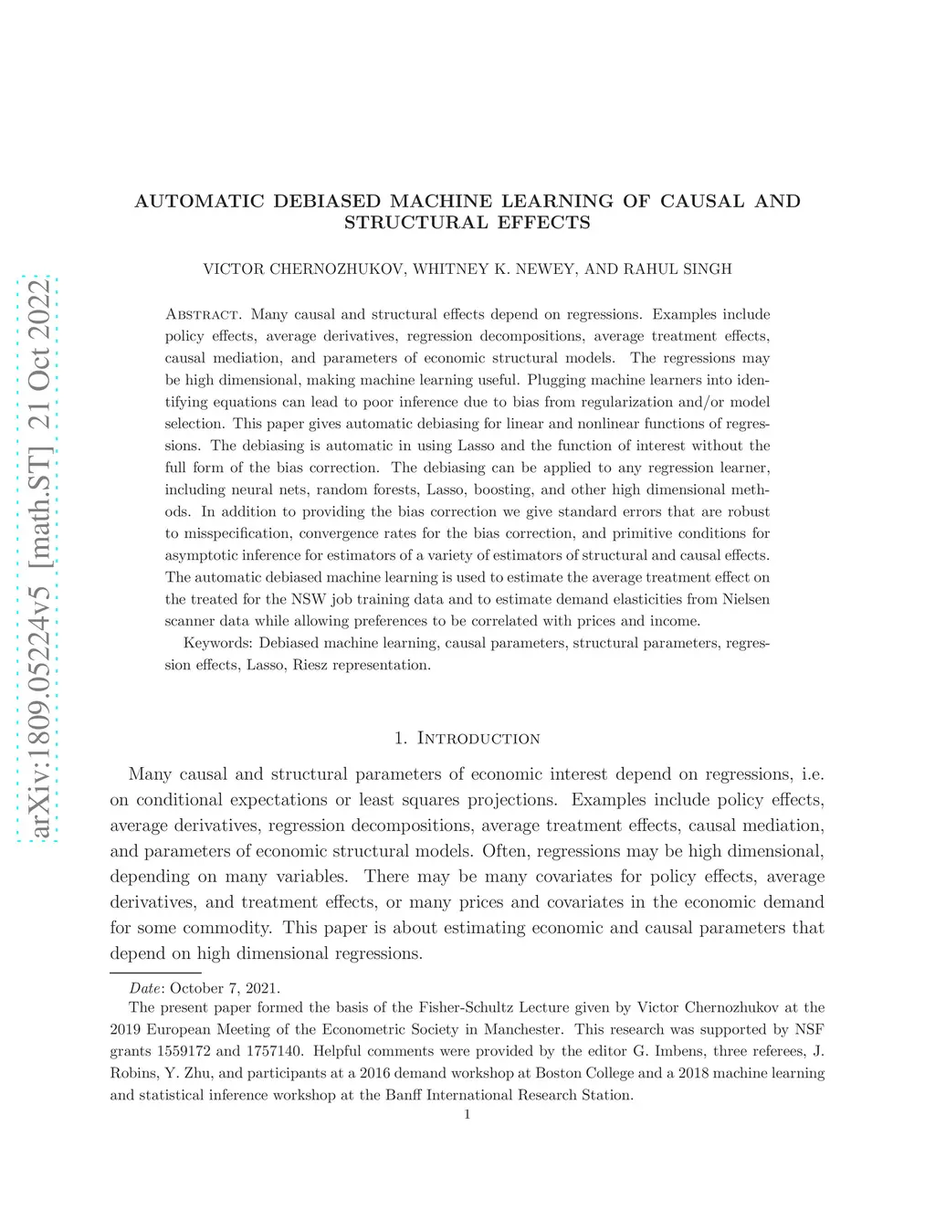 Automatic Debiased Machine Learning of Causal and Structural Effects