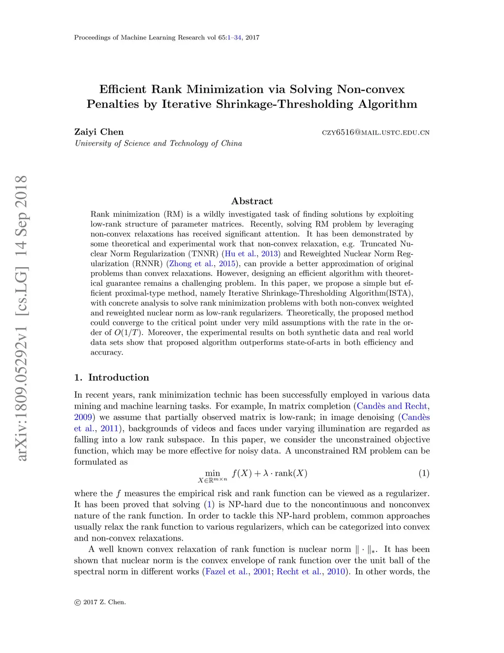Rank minimization (RM) is a wildly investigated task of finding solutions by exploiting low-rank structure of parameter matrices. Recently, solving RM problem by leveraging non-convex relaxations has received significant attention. It has been demonstrated by some theoretical and experimental work that non-convex relaxation, e.g. Truncated Nuclear Norm Regularization (TNNR) and Reweighted Nuclear Norm Regularization (RNNR), can provide a better approximation of original problems than convex relaxations. However, designing an efficient algorithm with theoretical guarantee remains a challenging problem. In this paper, we propose a simple but efficient proximal-type method, namely Iterative Shrinkage-Thresholding Algorithm(ISTA), with concrete analysis to solve rank minimization problems with both non-convex weighted and reweighted nuclear norm as low-rank regularizers. Theoretically, the proposed method could converge to the critical point under very mild assumptions with the rate in the order of . Moreover, the experimental results on both synthetic data and real world data sets show that proposed algorithm outperforms state-of-arts in both efficiency and accuracy.