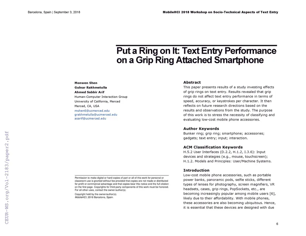 Put a Ring on It: Text Entry Performance on a Grip Ring Attached