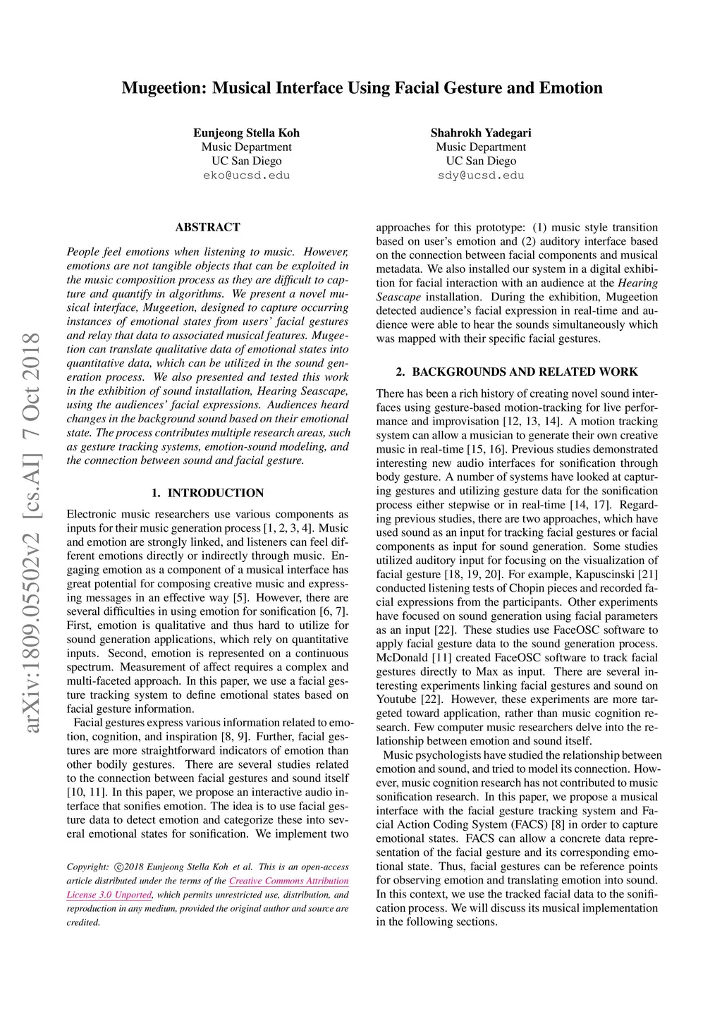 Mugeetion: Musical Interface Using Facial Gesture and Emotion