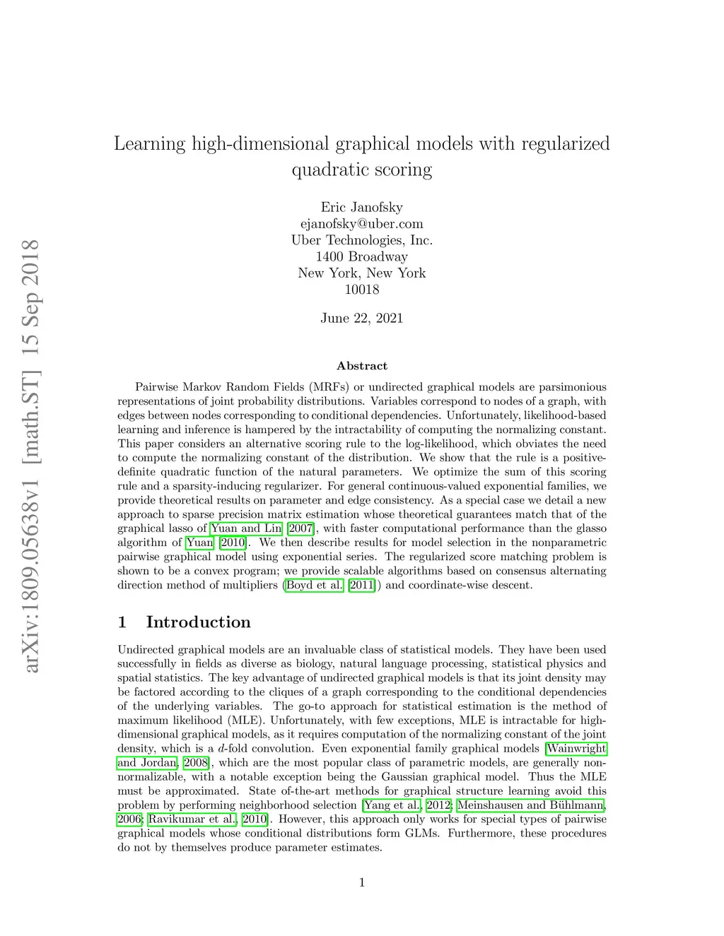Learning high-dimensional graphical models with regularized quadratic