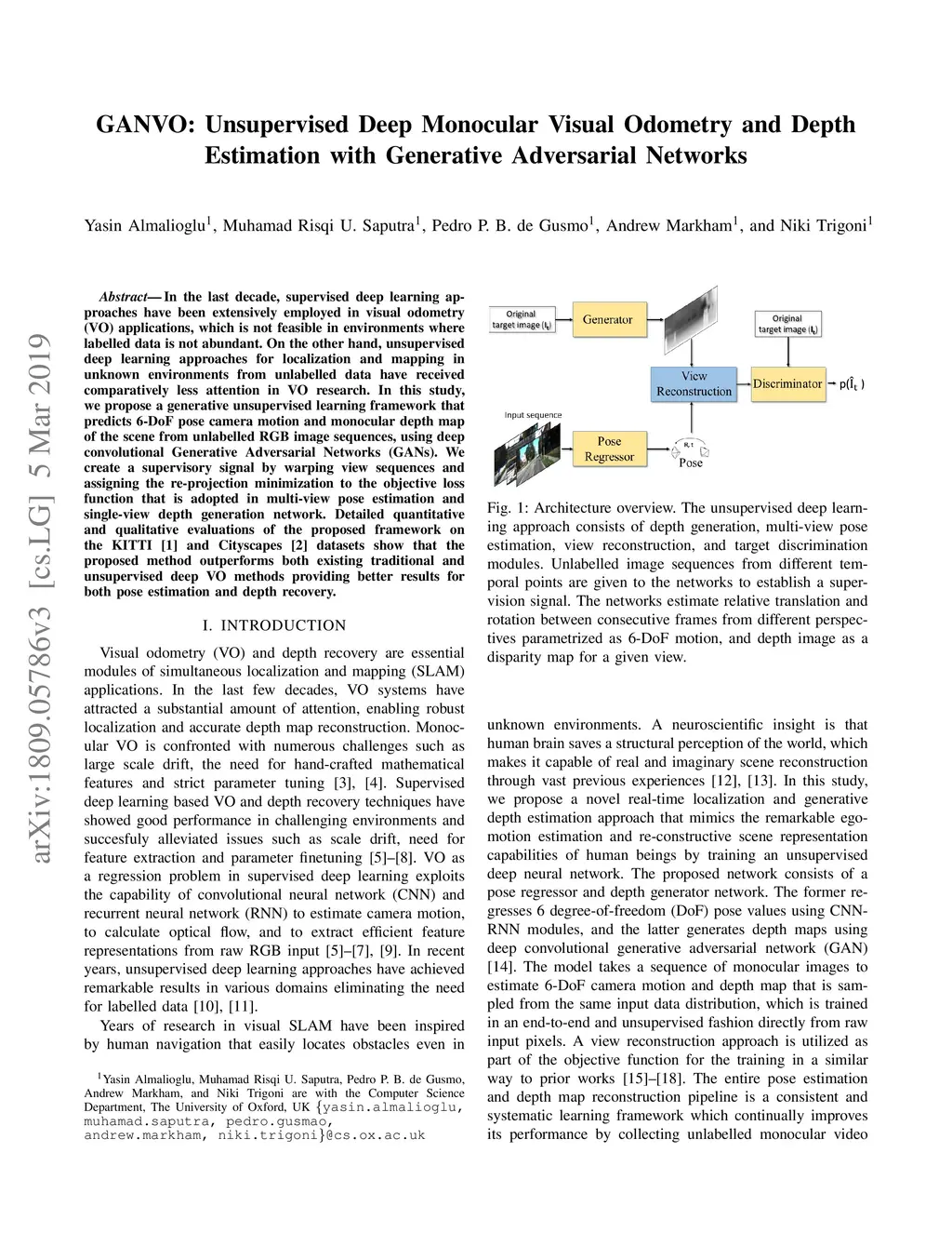 GANVO: Unsupervised Deep Monocular Visual Odometry and Depth Estimation