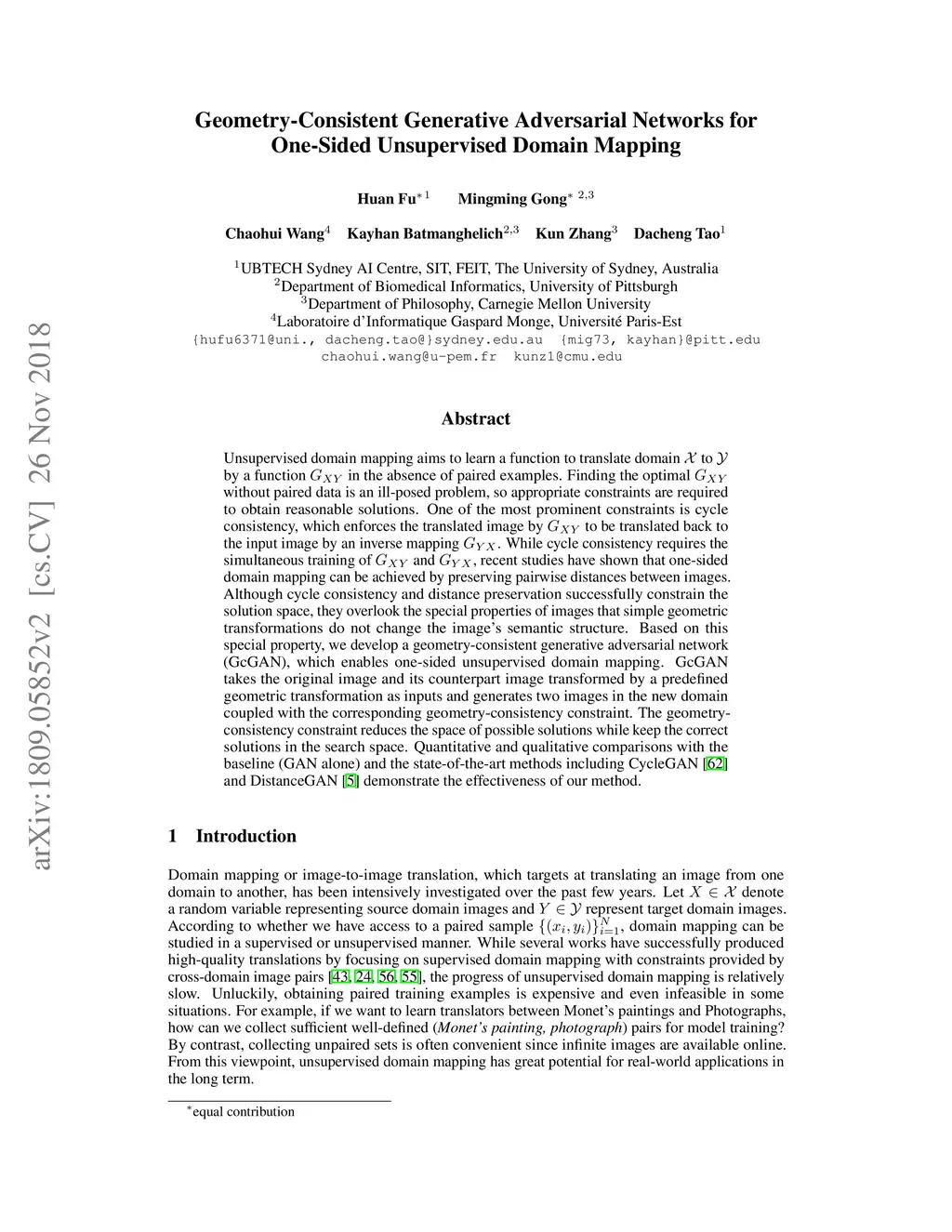 Geometry-Consistent Generative Adversarial Networks for One-Sided