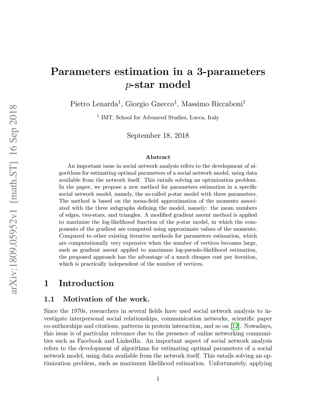 Parameters estimation in a 3-parameters p-star model