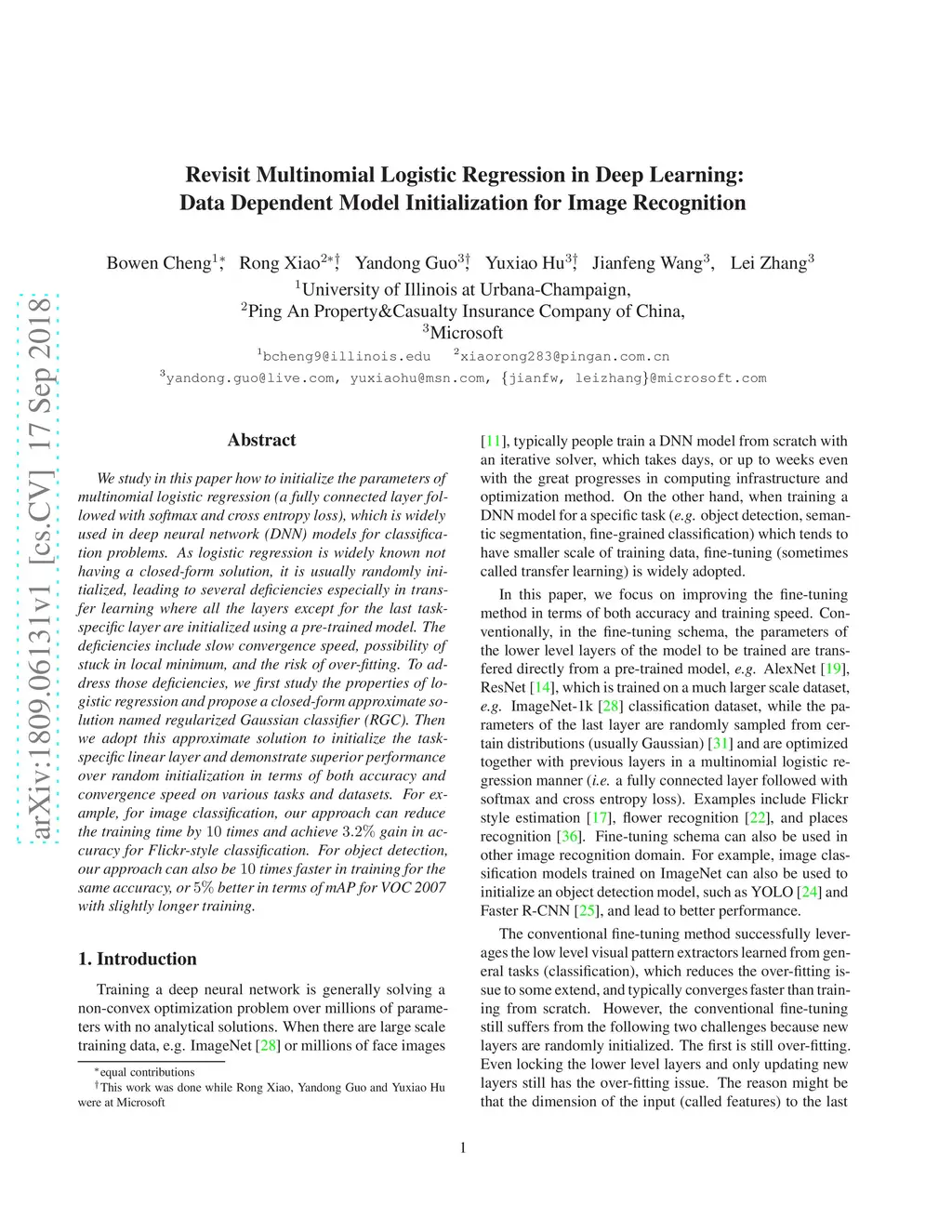 Model Initialization for Image Recognition