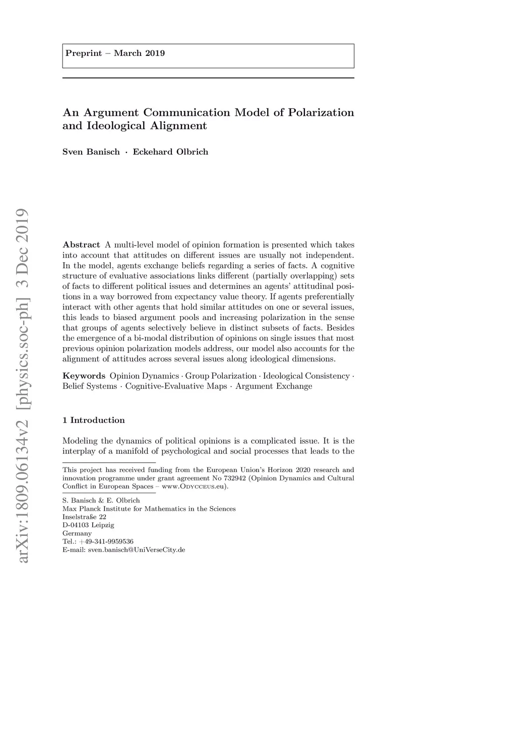 A multi-level model of opinion formation is presented which takes into account that attitudes on different issues are usually not independent. In the model, agents exchange beliefs regarding a series of facts. A cognitive structure of evaluative associations links different (partially overlapping) sets of facts to different political issues and determines an agents' attitudinal positions in a way borrowed from expectancy value theory. If agents preferentially interact with other agents that hold similar attitudes on one or several issues, this leads to biased argument pools and polarization in the sense that groups of agents selectively belief in distinct subsets of facts. Besides the emergence of a bi-modal distribution of opinions on single issues that most previous opinion polarization models address, our model also accounts for the alignment of attitudes across several issues along ideological dimensions.
