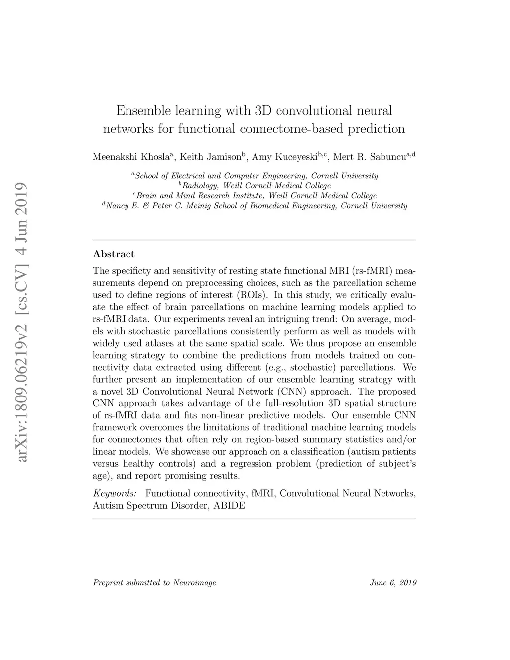 Ensemble learning with 3D convolutional neural networks for