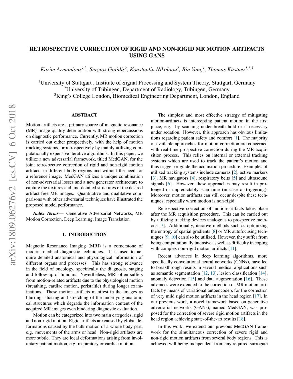 Retrospective correction of Rigid and Non-Rigid MR motion artifacts