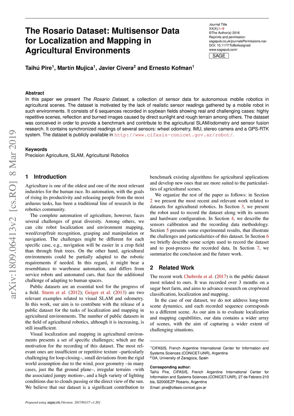 The Rosario Dataset: Multisensor Data for Localization and Mapping in