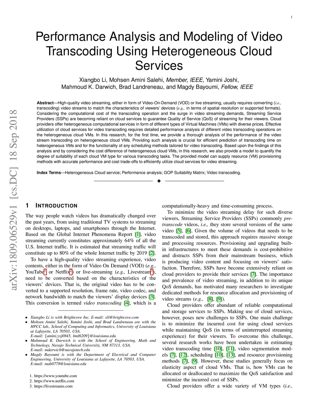 Performance Analysis and Modeling of Video Transcoding Using
