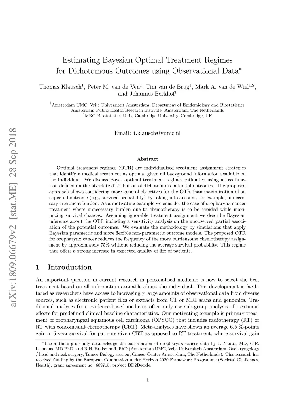 Estimating Bayesian Optimal Treatment Regimes for Dichotomous Outcomes