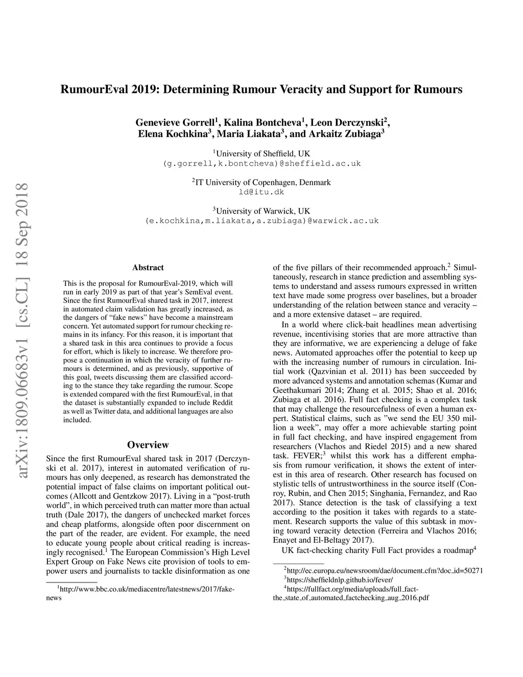 RumourEval 2019: Determining Rumour Veracity and Support for Rumours