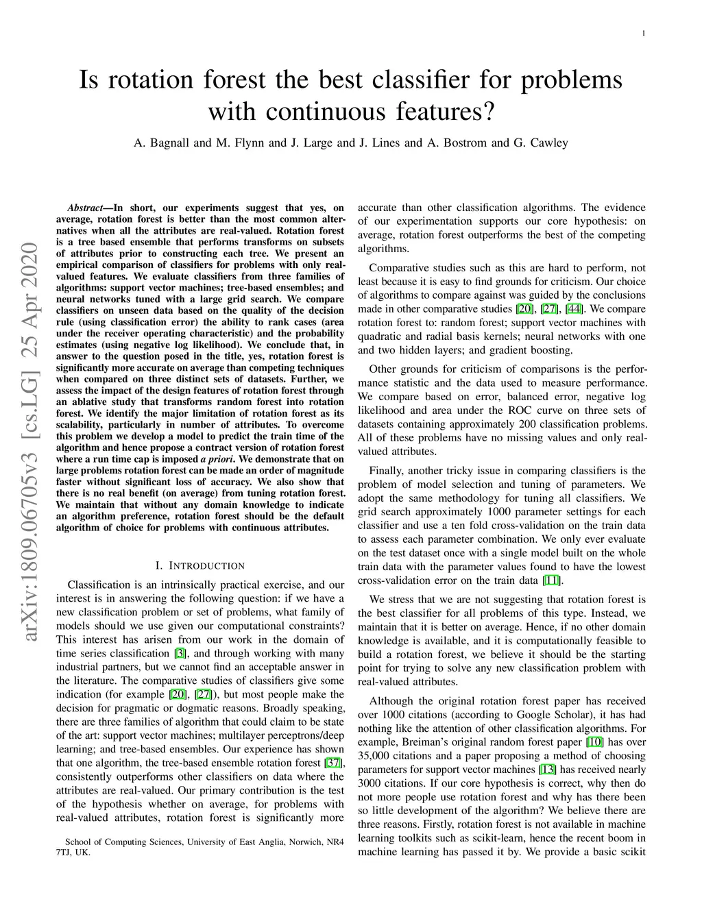 In short, our experiments suggest that yes, on average, rotation forest is better than the most common alternatives when all the attributes are real-valued. Rotation forest is a tree based ensemble that performs transforms on subsets of attributes prior to constructing each tree. We present an empirical comparison of classifiers for problems with only real-valued features. We evaluate classifiers from three families of algorithms: support vector machines; tree-based ensembles; and neural networks tuned with a large grid search. We compare classifiers on unseen data based on the quality of the decision rule (using classification error) the ability to rank cases (area under the receiver operating characteristic) and the probability estimates (using negative log likelihood). We conclude that, in answer to the question posed in the title, yes, rotation forest is significantly more accurate on average than competing techniques when compared on three distinct sets of datasets. Further, we assess the impact of the design features of rotation forest through an ablative study that transforms random forest into rotation forest. We identify the major limitation of rotation forest as its scalability, particularly in number of attributes. To overcome this problem we develop a model to predict the train time of the algorithm and hence propose a contract version of rotation forest where a run time cap is imposed {\em a priori}. We demonstrate that on large problems rotation forest can be made an order of magnitude faster without significant loss of accuracy. We also show that there is no real benefit (on average) from tuning rotation forest. We maintain that without any domain knowledge to indicate an algorithm preference, rotation forest should be the default algorithm of choice for problems with continuous attributes.