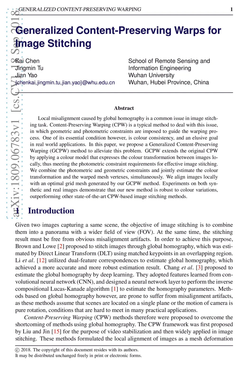 Generalized Content-Preserving Warps for Image Stitching