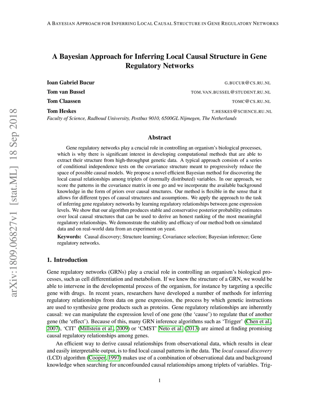 A Bayesian Approach for Inferring Local Causal Structure in Gene