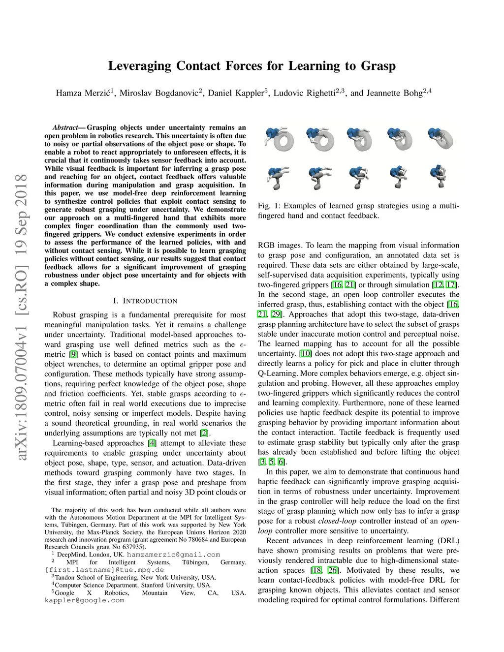 Leveraging Contact Forces for Learning to Grasp