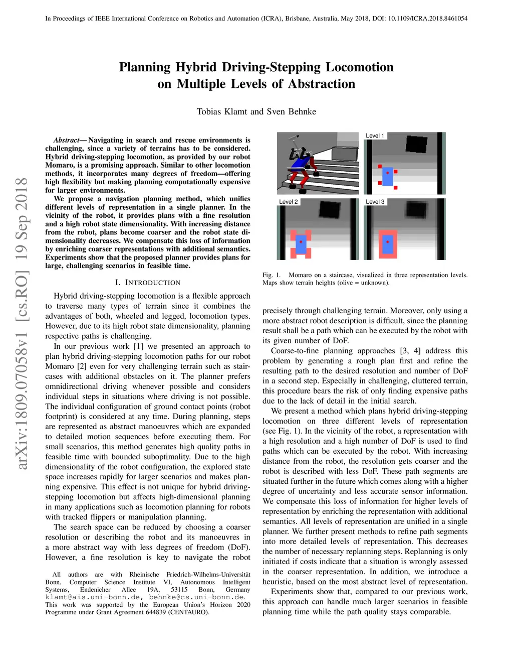Planning Hybrid Driving-Stepping Locomotion on Multiple Levels of