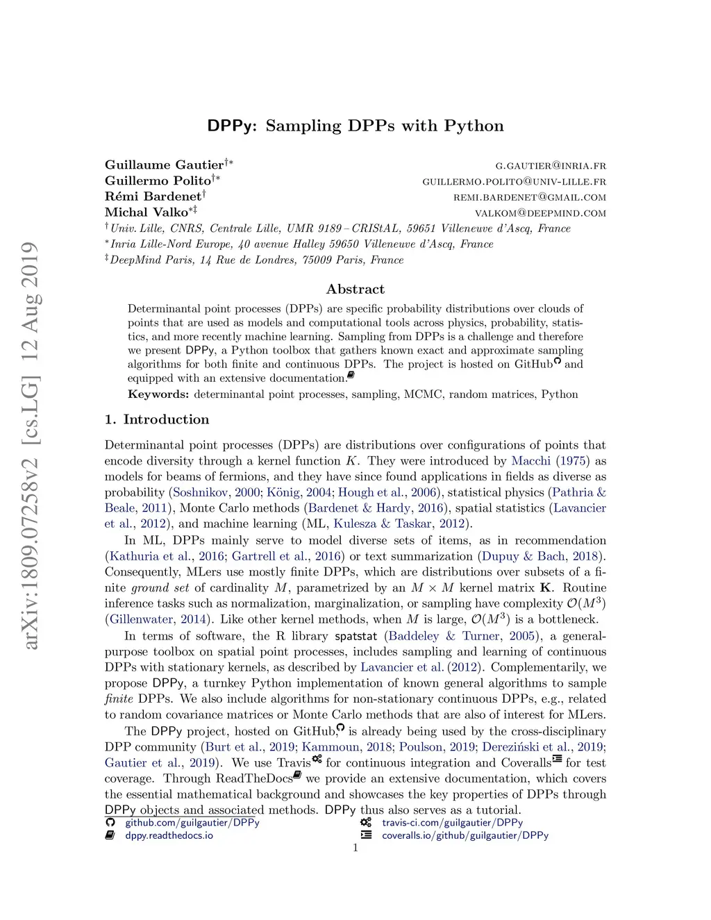 Determinantal point processes (DPPs) are specific probability distributions over clouds of points that are used as models and computational tools across physics, probability, statistics, and more recently machine learning. Sampling from DPPs is a challenge and therefore we present DPPy, a Python toolbox that gathers known exact and approximate sampling algorithms for both finite and continuous DPPs. The project is hosted on GitHub and equipped with an extensive documentation.