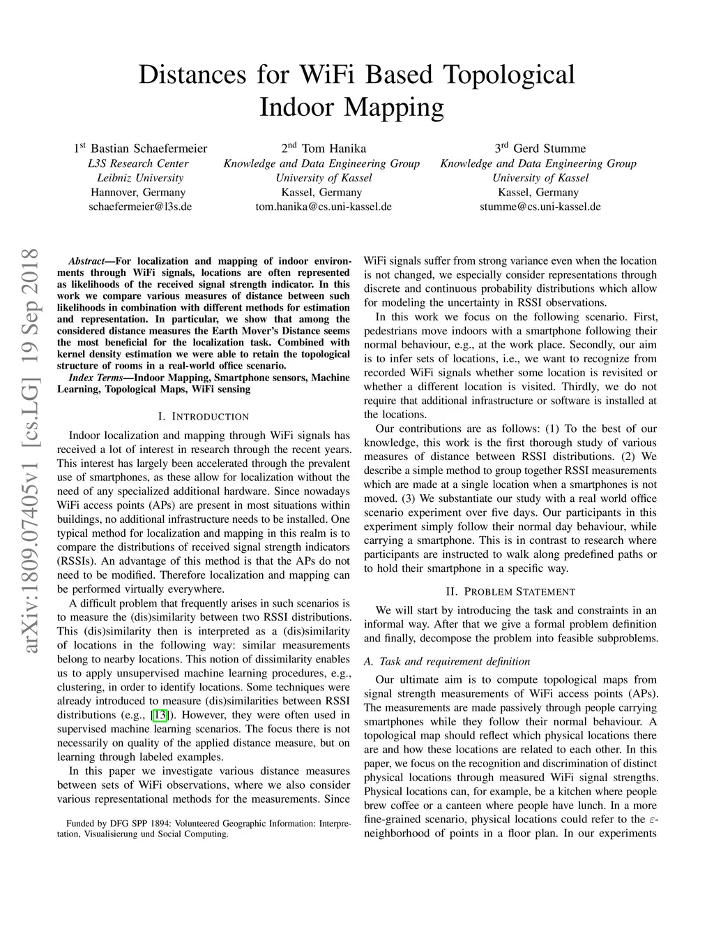 For localization and mapping of indoor environments through WiFi signals, locations are often represented as likelihoods of the received signal strength indicator. In this work we compare various measures of distance between such likelihoods in combination with different methods for estimation and representation. In particular, we show that among the considered distance measures the Earth Mover's Distance seems the most beneficial for the localization task. Combined with kernel density estimation we were able to retain the topological structure of rooms in a real-world office scenario.