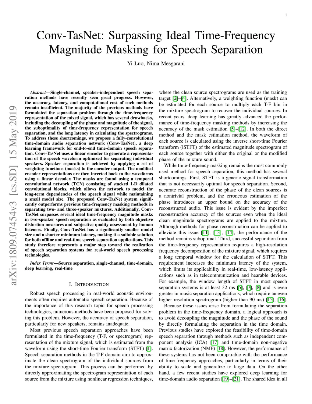 TasNet: Surpassing Ideal Time-Frequency Masking for Speech Separation