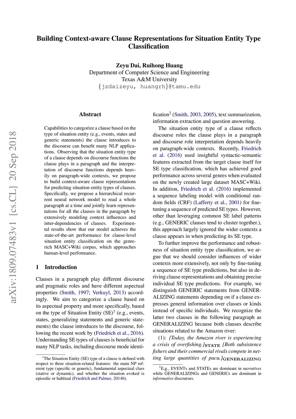 Building Context-aware Clause Representations for Situation Entity Type