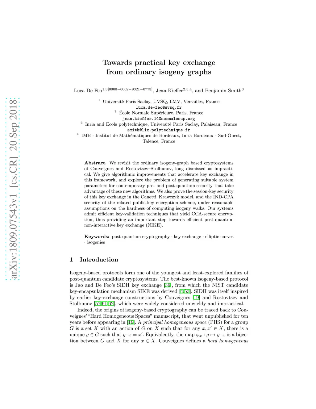 We revisit the ordinary isogeny-graph based cryptosystems of Couveignes and Rostovtsev-Stolbunov, long dismissed as impractical. We give algorithmic improvements that accelerate key exchange in this framework, and explore the problem of generating suitable system parameters for contemporary pre-and post-quantum security that take advantage of these new algorithms. We also prove the session-key security of this key exchange in the Canetti-Krawczyk model, and the IND-CPA security of the related public-key encryption scheme, under reasonable assumptions on the hardness of computing isogeny walks. Our systems admit efficient key-validation techniques that yield CCA-secure encryp-tion, thus providing an important step towards efficient post-quantum non-interactive key exchange (NIKE).