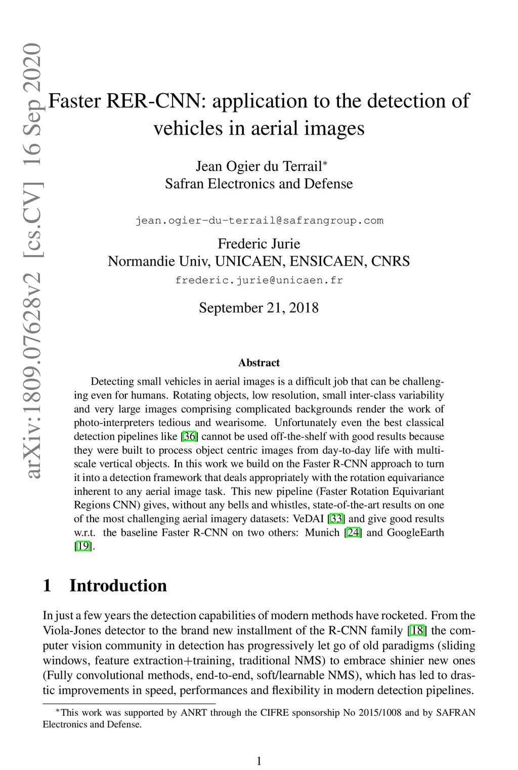 Faster RER-CNN: application to the detection of vehicles in aerial
