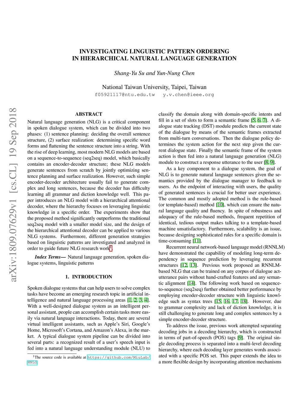 Natural language generation (NLG) is a critical component in spoken dialogue system, which can be divided into two phases: (1) sentence planning: deciding the overall sentence structure, (2) surface realization: determining specific word forms and flattening the sentence structure into a string. With the rise of deep learning, most modern NLG models are based on a sequence-to-sequence (seq2seq) model, which basically contains an encoder-decoder structure; these NLG models generate sentences from scratch by jointly optimizing sentence planning and surface realization. However, such simple encoder-decoder architecture usually fail to generate complex and long sentences, because the decoder has difficulty learning all grammar and diction knowledge well. This paper introduces an NLG model with a hierarchical attentional decoder, where the hierarchy focuses on leveraging linguistic knowledge in a specific order. The experiments show that the proposed method significantly outperforms the traditional seq2seq model with a smaller model size, and the design of the hierarchical attentional decoder can be applied to various NLG systems. Furthermore, different generation strategies based on linguistic patterns are investigated and analyzed in order to guide future NLG research work.