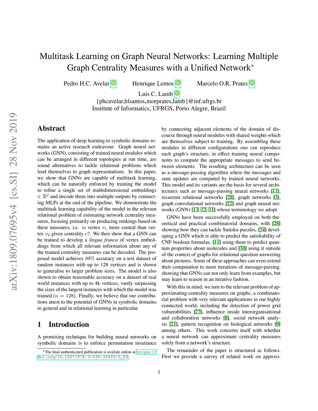 The application of deep learning to symbolic domains remains an active research endeavour. Graph neural networks (GNN), consisting of trained neural modules which can be arranged in different topologies at run time, are sound alternatives to tackle relational problems which lend themselves to graph representations. In this paper, we show that GNNs are capable of multitask learning, which can be naturally enforced by training the model to refine a single set of multidimensional embeddings and decode them into multiple outputs by connecting MLPs at the end of the pipeline. We demonstrate the multitask learning capability of the model in the relevant relational problem of estimating network centrality measures, focusing primarily on producing rankings based on these measures, i.e. is vertex more central than vertex given centrality ?. We then show that a GNN can be trained to develop a \emph{lingua franca} of vertex embeddings from which all relevant information about any of the trained centrality measures can be decoded. The proposed model achieves accuracy on a test dataset of random instances with up to 128 vertices and is shown to generalise to larger problem sizes. The model is also shown to obtain reasonable accuracy on a dataset of real world instances with up to 4k vertices, vastly surpassing the sizes of the largest instances with which the model was trained (). Finally, we believe that our contributions attest to the potential of GNNs in symbolic domains in general and in relational learning in particular.