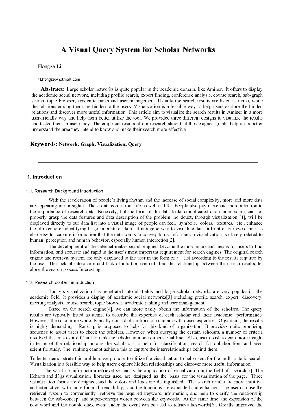 A Visual Query System for Scholar Networks