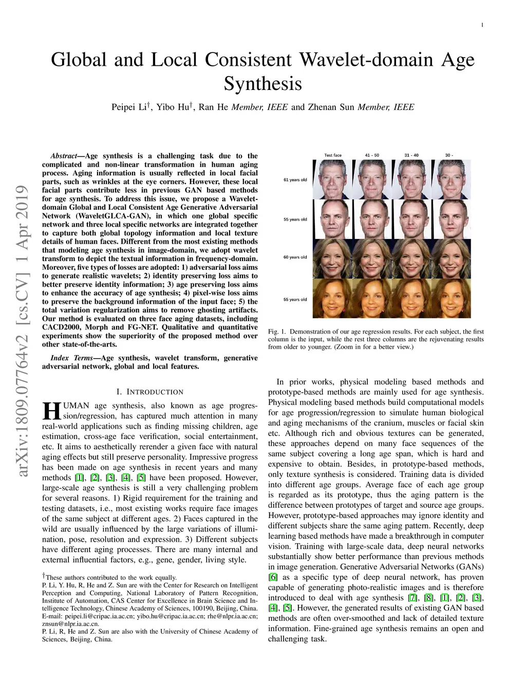 Global and Local Consistent Wavelet-domain Age Synthesis