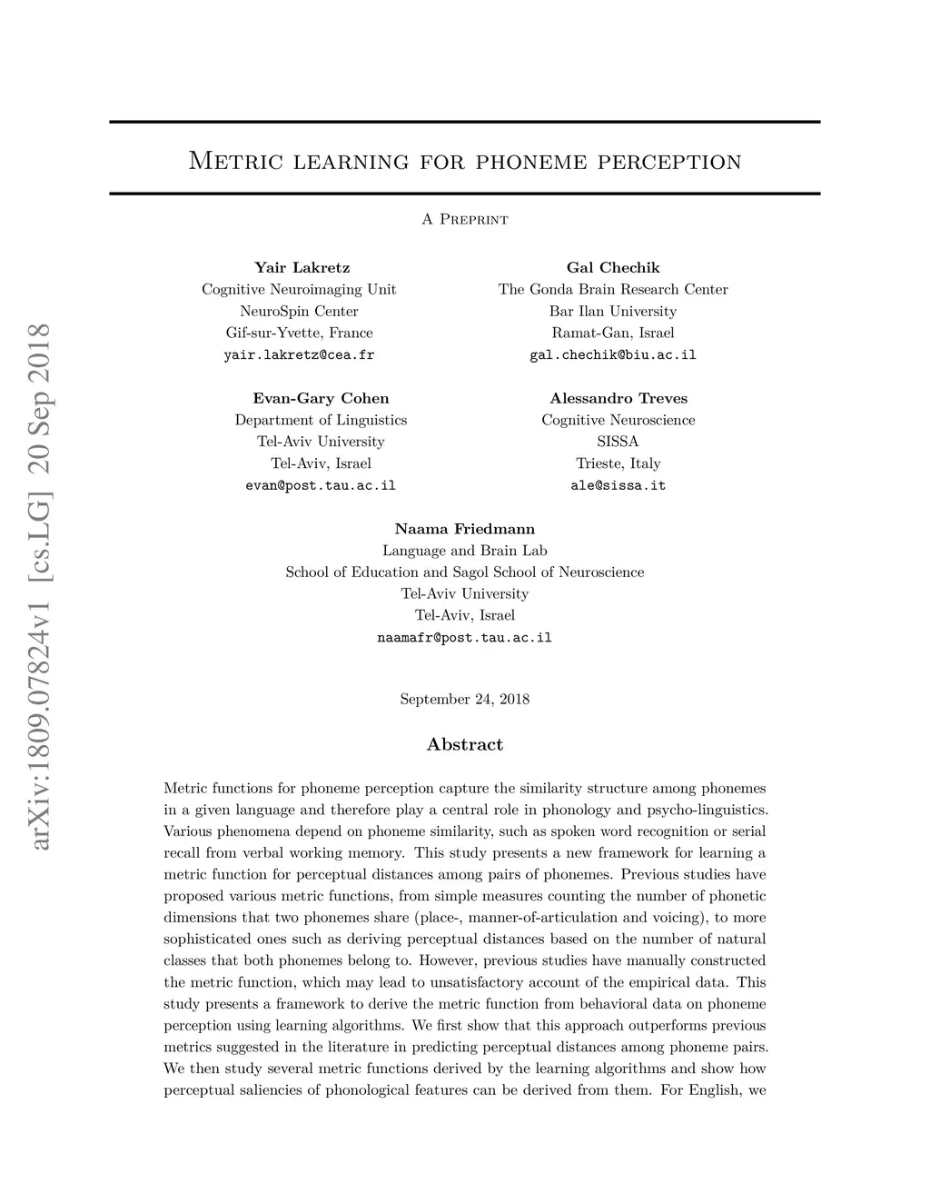 Metric Learning for Phoneme Perception
