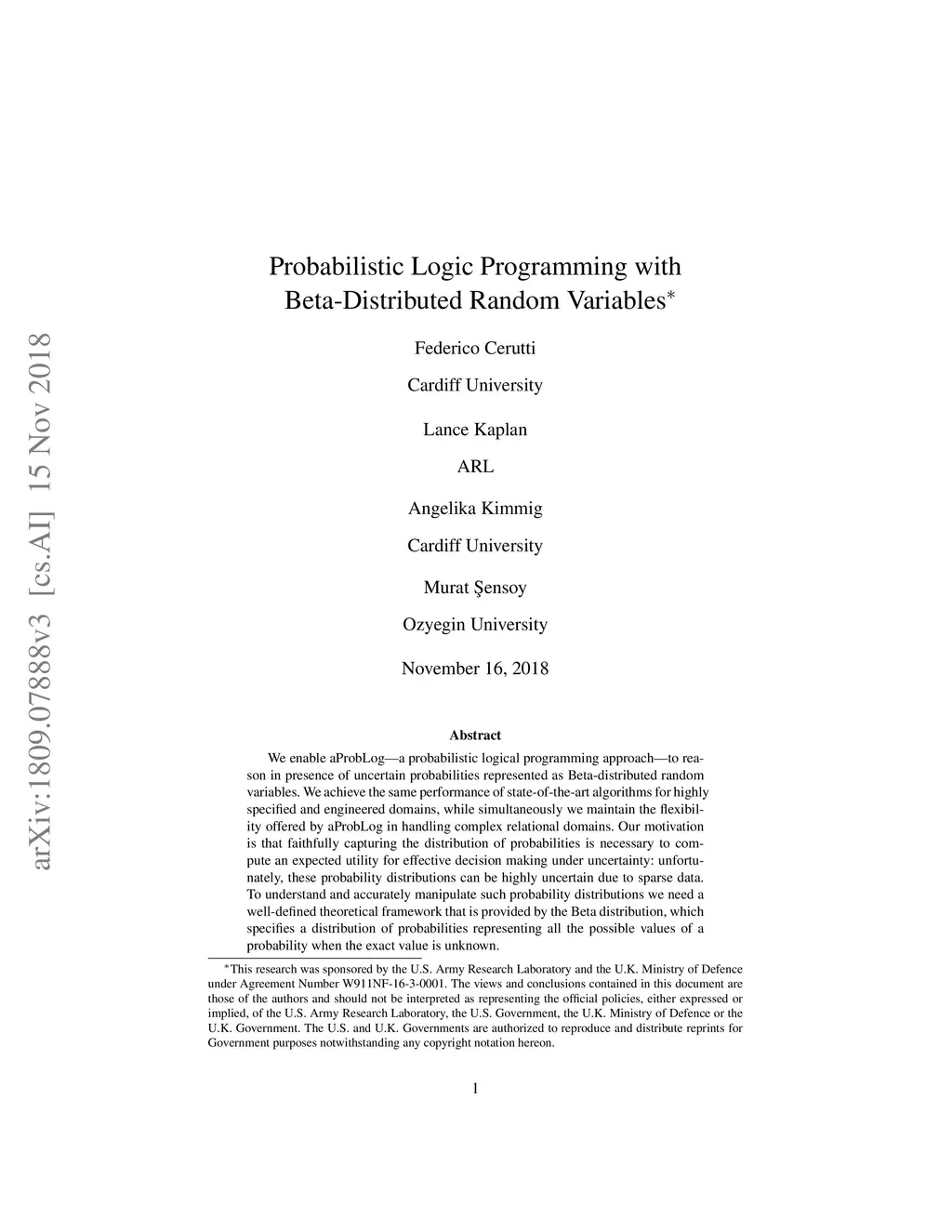 Probabilistic Logic Programming with Beta-Distributed Random Variables