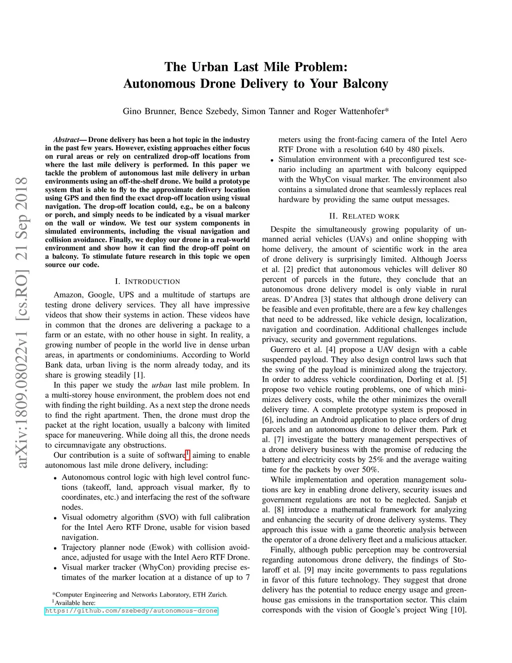 The Urban Last Mile Problem: Autonomous Drone Delivery to Your Balcony