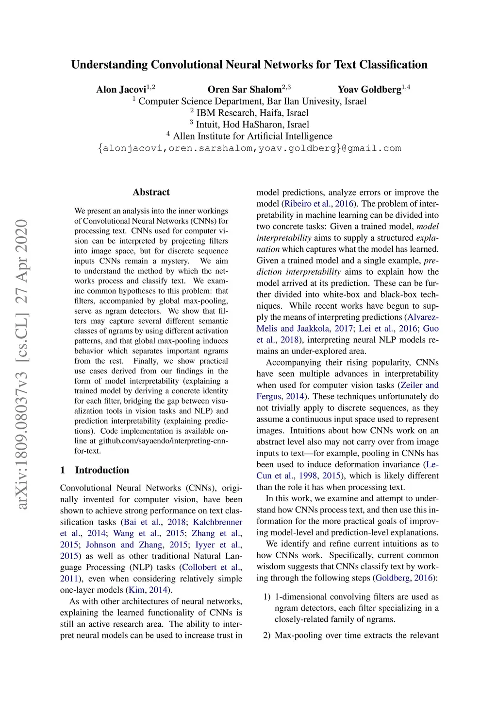 We present an analysis into the inner workings of Convolutional Neural Networks (CNNs) for processing text. CNNs used for computer vision can be interpreted by projecting filters into image space, but for discrete sequence inputs CNNs remain a mystery. We aim to understand the method by which the networks process and classify text. We examine common hypotheses to this problem: that filters, accompanied by global max-pooling, serve as ngram detectors. We show that filters may capture several different semantic classes of ngrams by using different activation patterns, and that global max-pooling induces behavior which separates important ngrams from the rest. Finally, we show practical use cases derived from our findings in the form of model interpretability (explaining a trained model by deriving a concrete identity for each filter, bridging the gap between visualization tools in vision tasks and NLP) and prediction interpretability (explaining predictions). Code implementation is available online at github.com/sayaendo/interpreting-cnn-for-text.