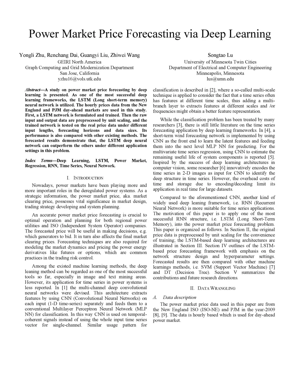 Power Market Price Forecasting via Deep Learning