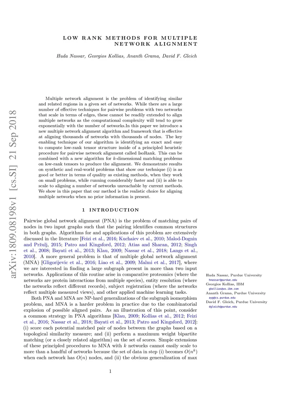 Multiple network alignment is the problem of identifying similar and related regions in a given set of networks. While there are a large number of effective techniques for pairwise problems with two networks that scale in terms of edges, these cannot be readily extended to align multiple networks as the computational complexity will tend to grow exponentially with the number of networks.In this paper we introduce a new multiple network alignment algorithm and framework that is effective at aligning thousands of networks with thousands of nodes. The key enabling technique of our algorithm is identifying an exact and easy to compute low-rank tensor structure inside of a principled heuristic procedure for pairwise network alignment called IsoRank. This can be combined with a new algorithm for -dimensional matching problems on low-rank tensors to produce the alignment. We demonstrate results on synthetic and real-world problems that show our technique (i) is as good or better in terms of quality as existing methods, when they work on small problems, while running considerably faster and (ii) is able to scale to aligning a number of networks unreachable by current methods. We show in this paper that our method is the realistic choice for aligning multiple networks when no prior information is present.