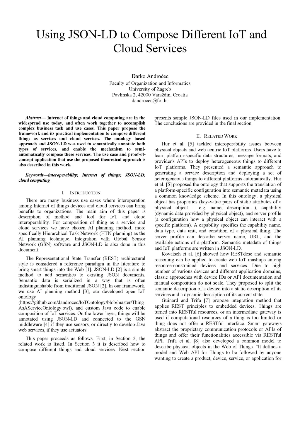 Using JSON-LD to Compose Different IoT and Cloud Services