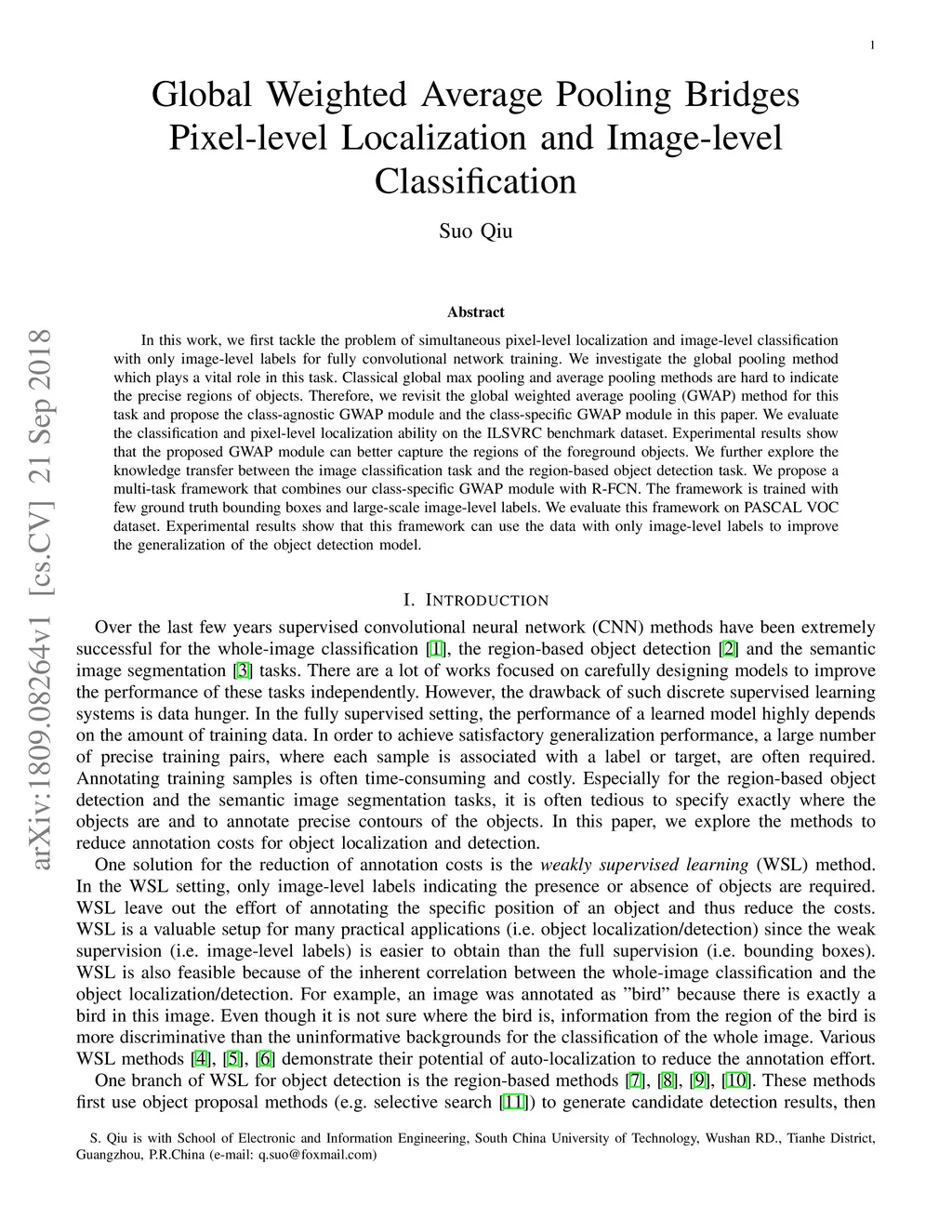 In this work, we first tackle the problem of simultaneous pixel-level localization and image-level classification with only image-level labels for fully convolutional network training. We investigate the global pooling method which plays a vital role in this task. Classical global max pooling and average pooling methods are hard to indicate the precise regions of objects. Therefore, we revisit the global weighted average pooling (GWAP) method for this task and propose the class-agnostic GWAP module and the class-specific GWAP module in this paper. We evaluate the classification and pixel-level localization ability on the ILSVRC benchmark dataset. Experimental results show that the proposed GWAP module can better capture the regions of the foreground objects. We further explore the knowledge transfer between the image classification task and the region-based object detection task. We propose a multi-task framework that combines our class-specific GWAP module with R-FCN. The framework is trained with few ground truth bounding boxes and large-scale image-level labels. We evaluate this framework on PASCAL VOC dataset. Experimental results show that this framework can use the data with only image-level labels to improve the generalization of the object detection model.