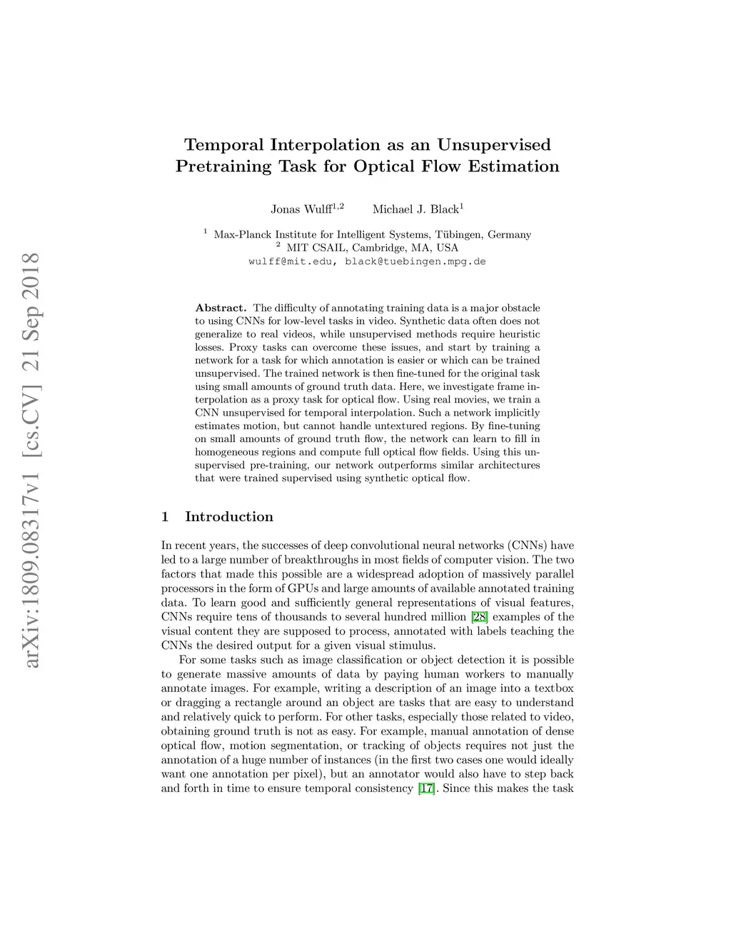 Temporal Interpolation as an Unsupervised Pretraining Task for Optical