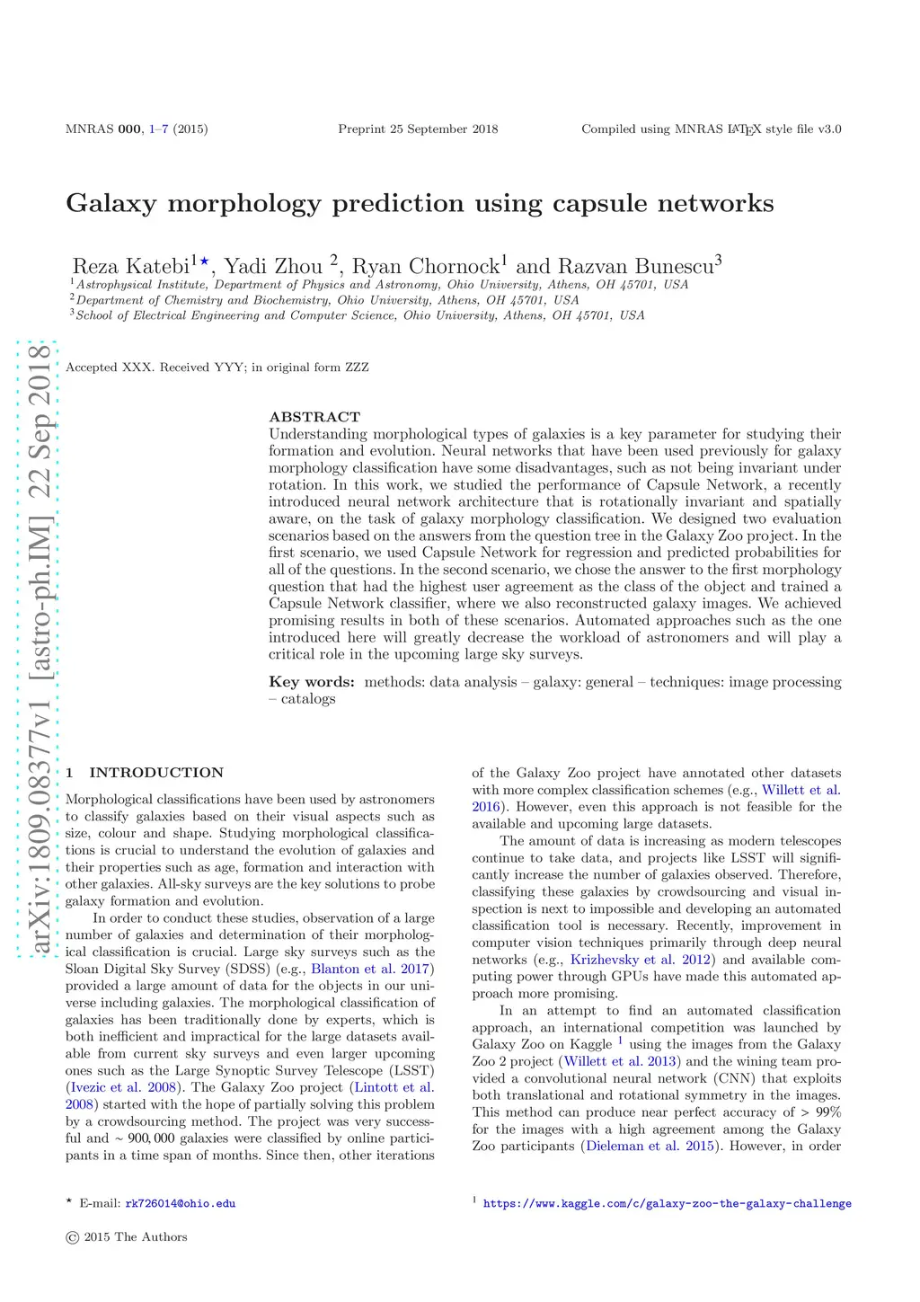 Galaxy morphology prediction using capsule networks