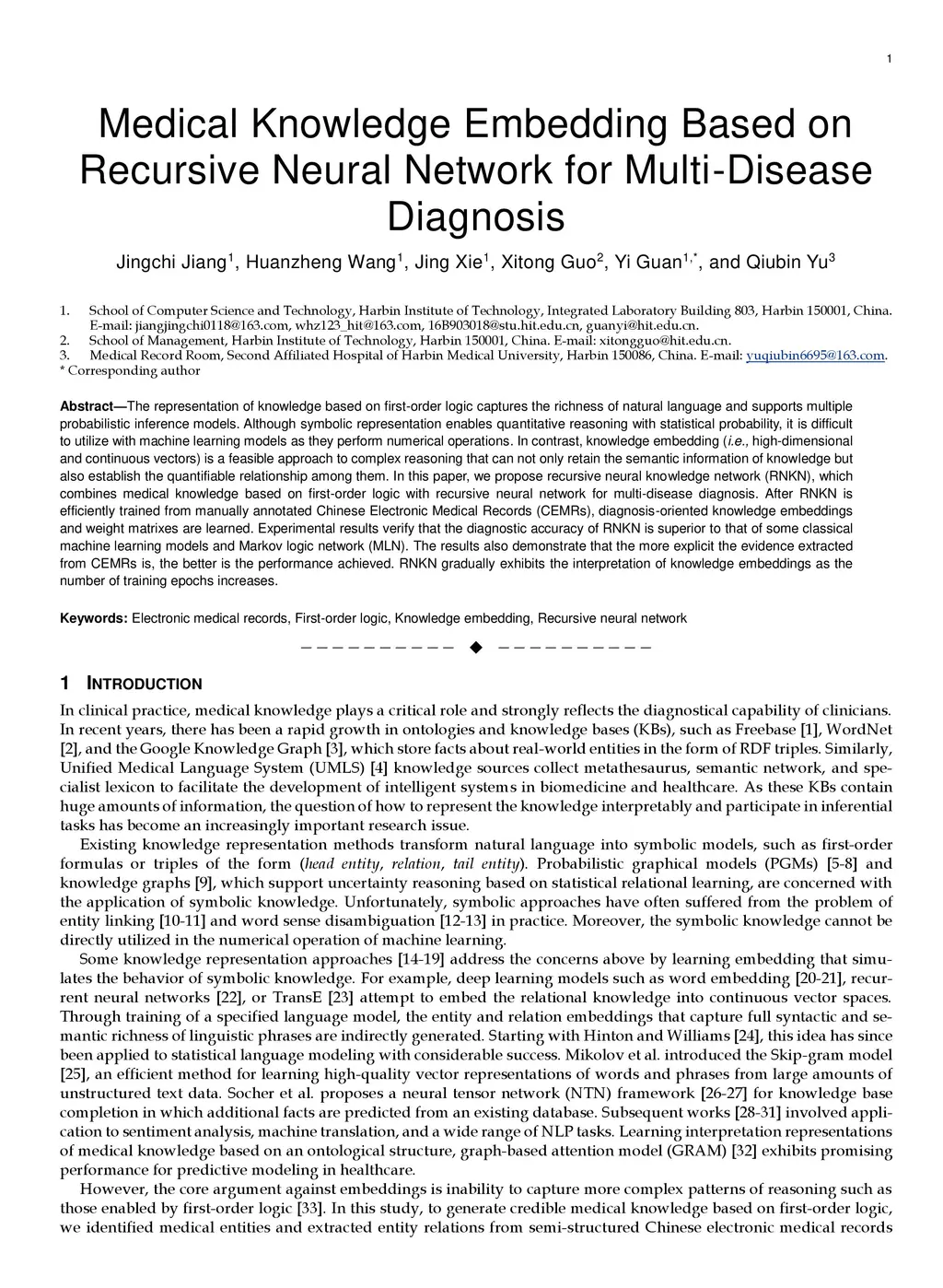 Medical Knowledge Embedding Based on Recursive Neural Network for