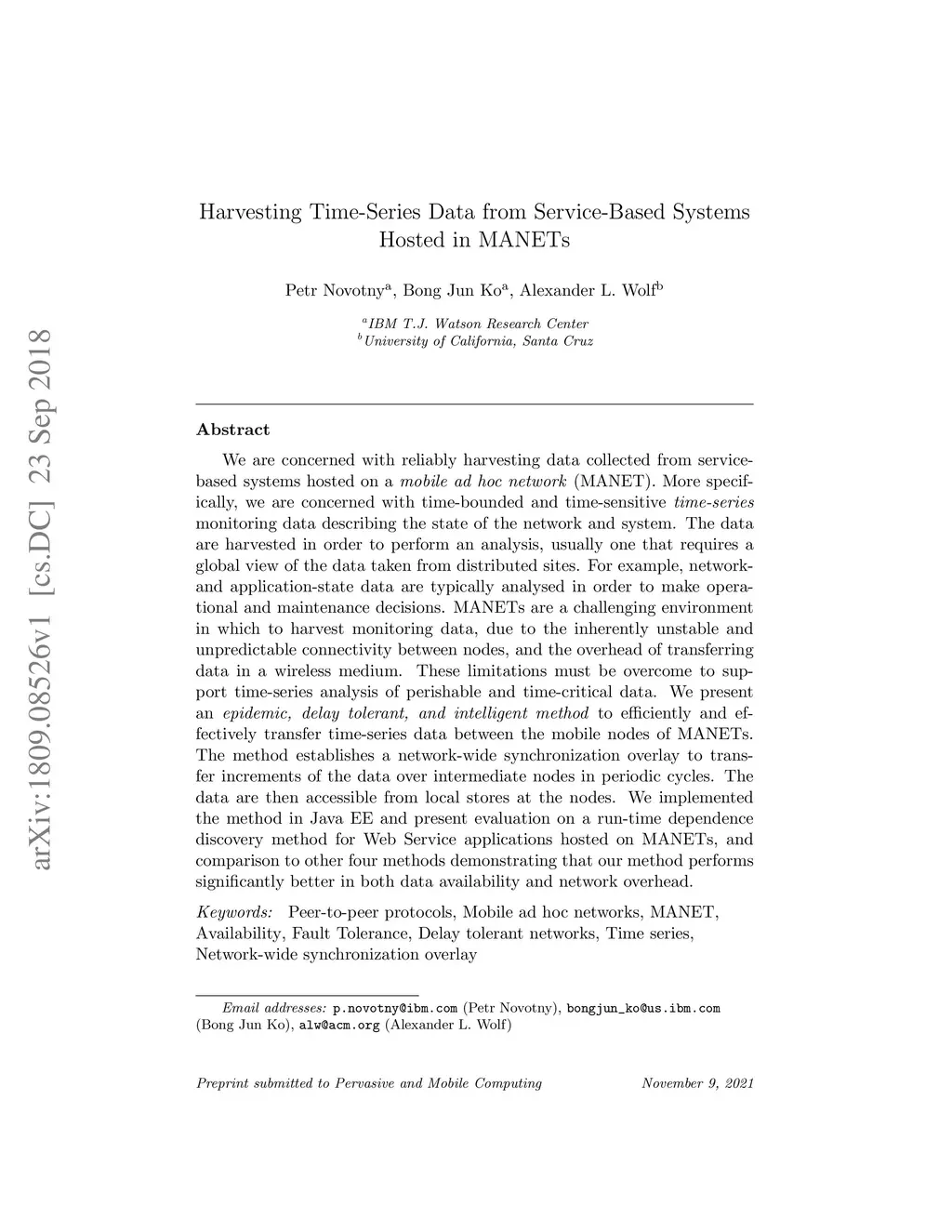 Harvesting Time-Series Data from Service-Based Systems Hosted in MANETs