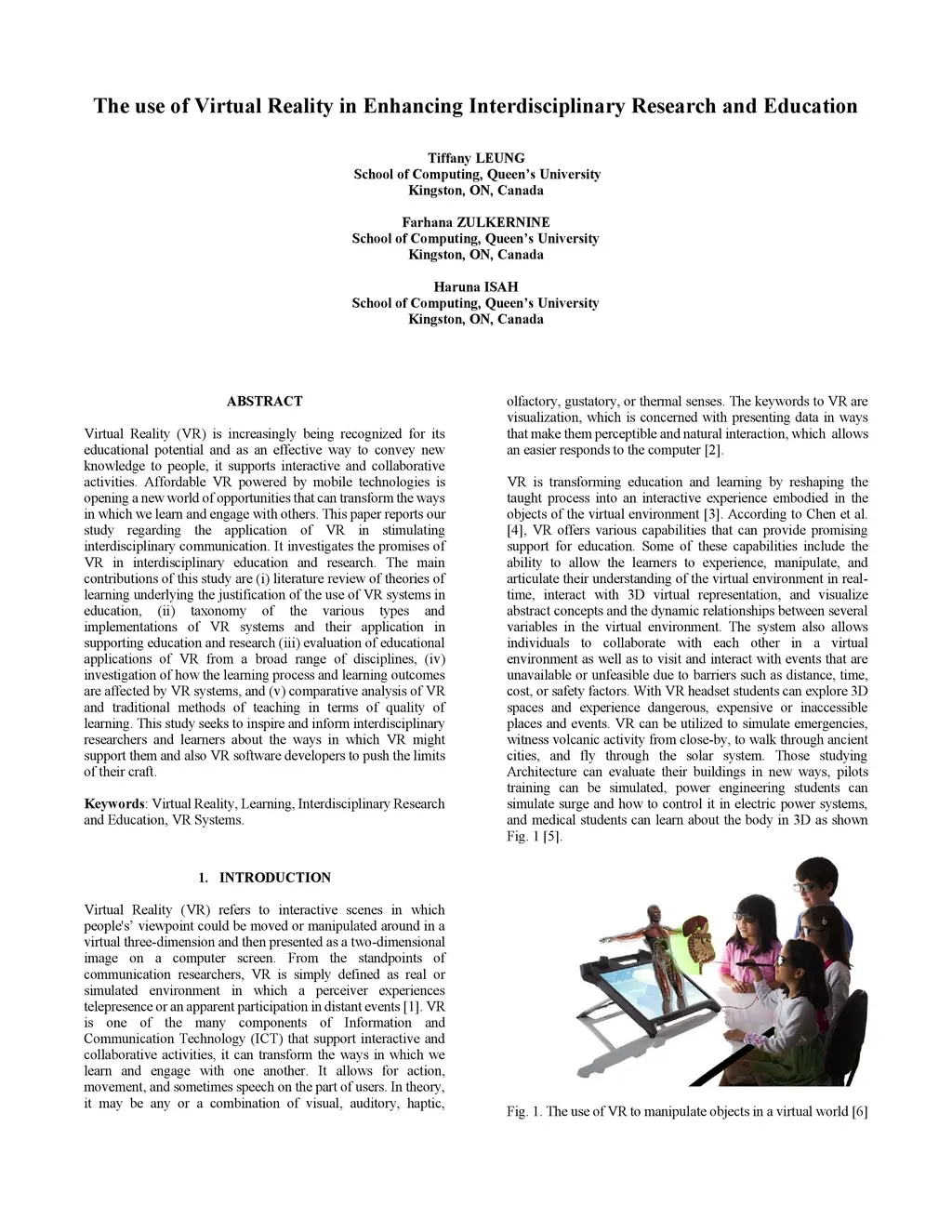 The use of Virtual Reality in Enhancing Interdisciplinary Research and