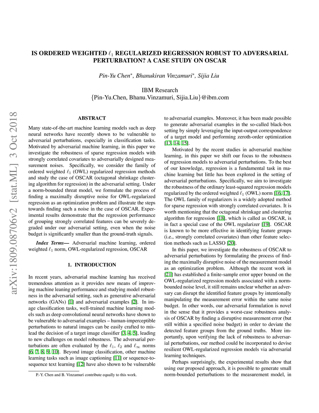 Many state-of-the-art machine learning models such as deep neural networks have recently shown to be vulnerable to adversarial perturbations, especially in classification tasks. Motivated by adversarial machine learning, in this paper we investigate the robustness of sparse regression models with strongly correlated covariates to adversarially designed measurement noises. Specifically, we consider the family of ordered weighted (OWL) regularized regression methods and study the case of OSCAR (octagonal shrinkage clustering algorithm for regression) in the adversarial setting. Under a norm-bounded threat model, we formulate the process of finding a maximally disruptive noise for OWL-regularized regression as an optimization problem and illustrate the steps towards finding such a noise in the case of OSCAR. Experimental results demonstrate that the regression performance of grouping strongly correlated features can be severely degraded under our adversarial setting, even when the noise budget is significantly smaller than the ground-truth signals.