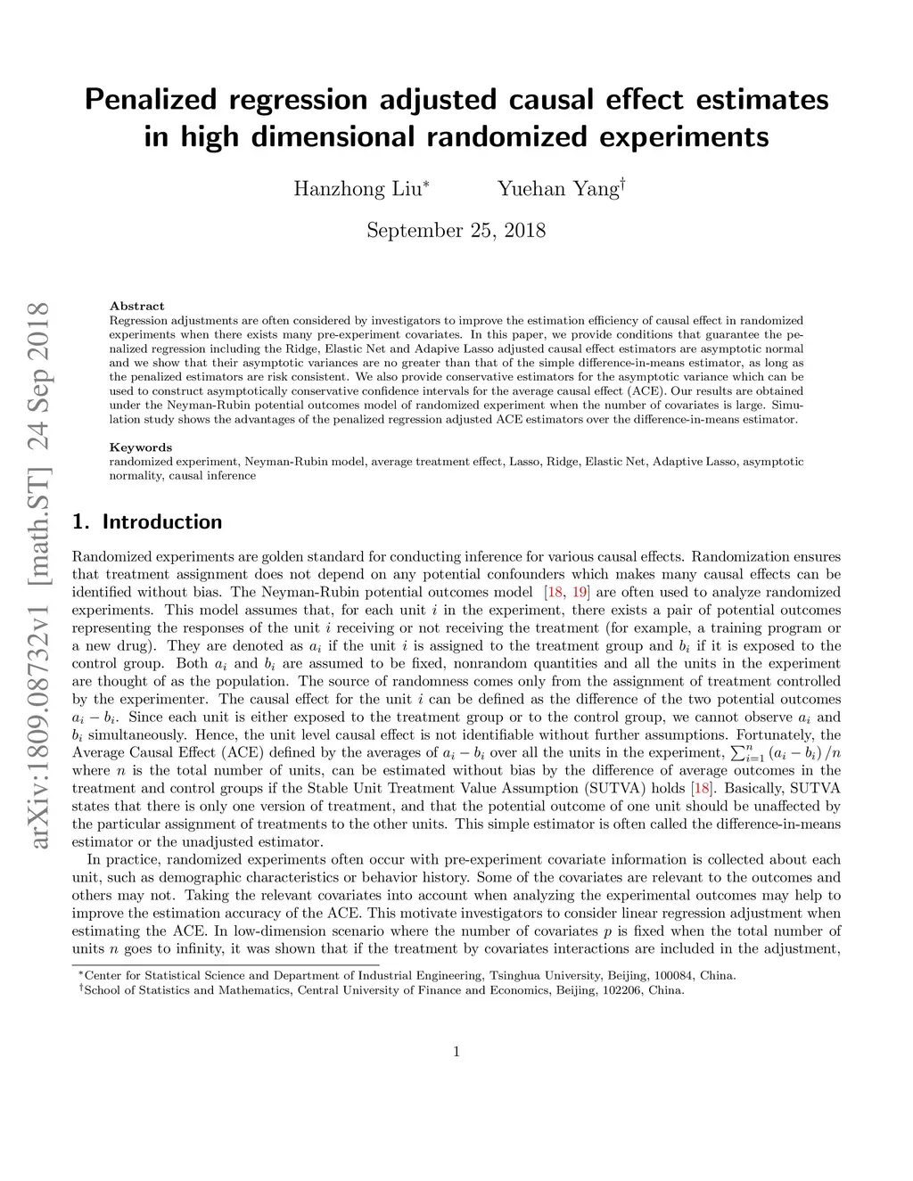 Regression adjustments are often considered by investigators to improve the estimation efficiency of causal effect in randomized experiments when there exists many pre-experiment covariates. In this paper, we provide conditions that guarantee the penalized regression including the Ridge, Elastic Net and Adapive Lasso adjusted causal effect estimators are asymptotic normal and we show that their asymptotic variances are no greater than that of the simple difference-in-means estimator, as long as the penalized estimators are risk consistent. We also provide conservative estimators for the asymptotic variance which can be used to construct asymptotically conservative confidence intervals for the average causal effect (ACE). Our results are obtained under the Neyman-Rubin potential outcomes model of randomized experiment when the number of covariates is large. Simulation study shows the advantages of the penalized regression adjusted ACE estimators over the difference-in-means estimator.