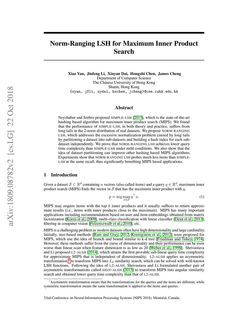 Norm-Ranging LSH for Maximum Inner Product Search
