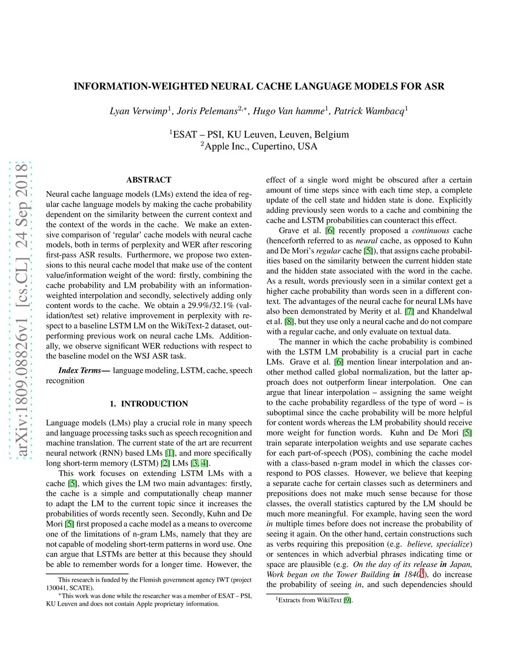 Information-Weighted Neural Cache Language Models for ASR