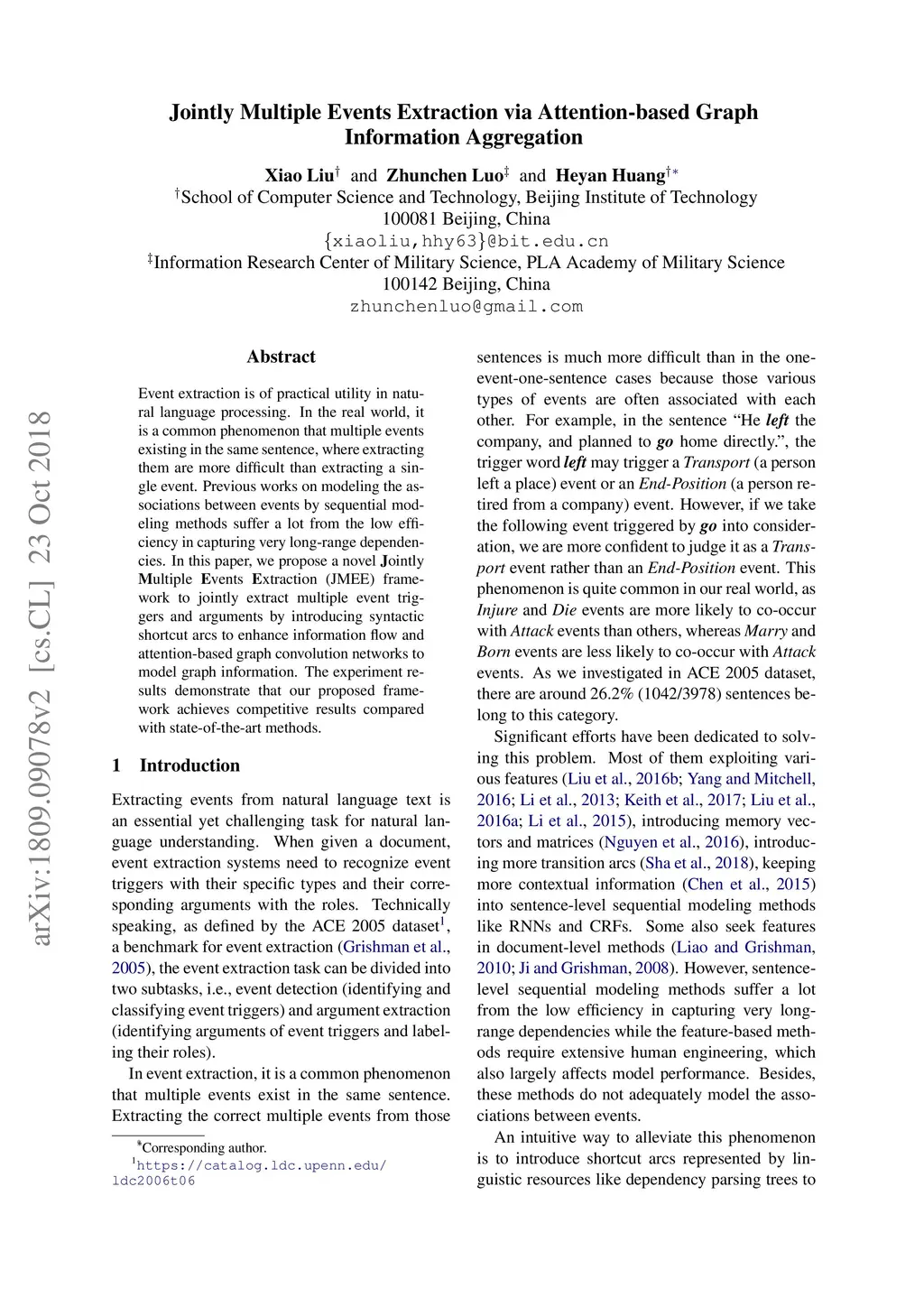 Jointly Multiple Events Extraction via Attention-based Graph Information